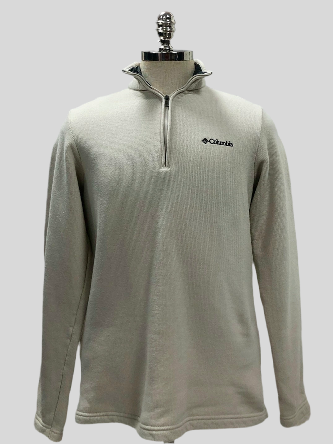 Sueter Jersey Columbia 🔷 - Talla Small - Entalle regular - Manga larga con puños en bandas - Color crema con logo en color negro - Tela de algodón - Cuello de 1/4 ajustable con zipper - Como nuevo 10/10 - Precio $35 💵 DM 📩 Por si tiene alguna consulta