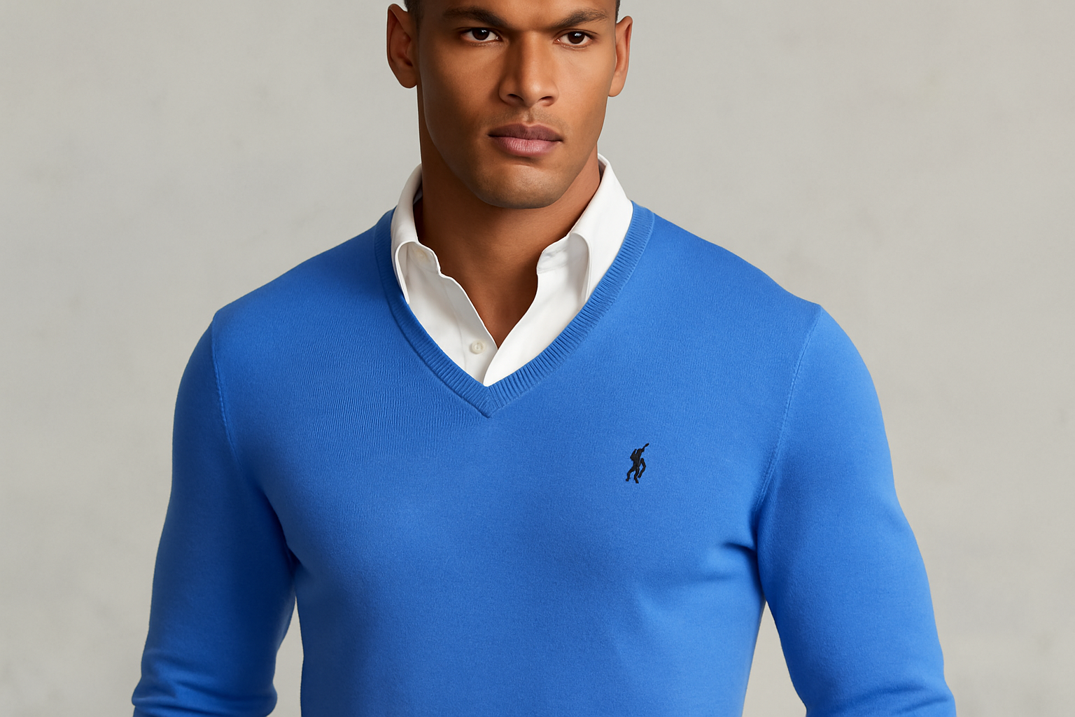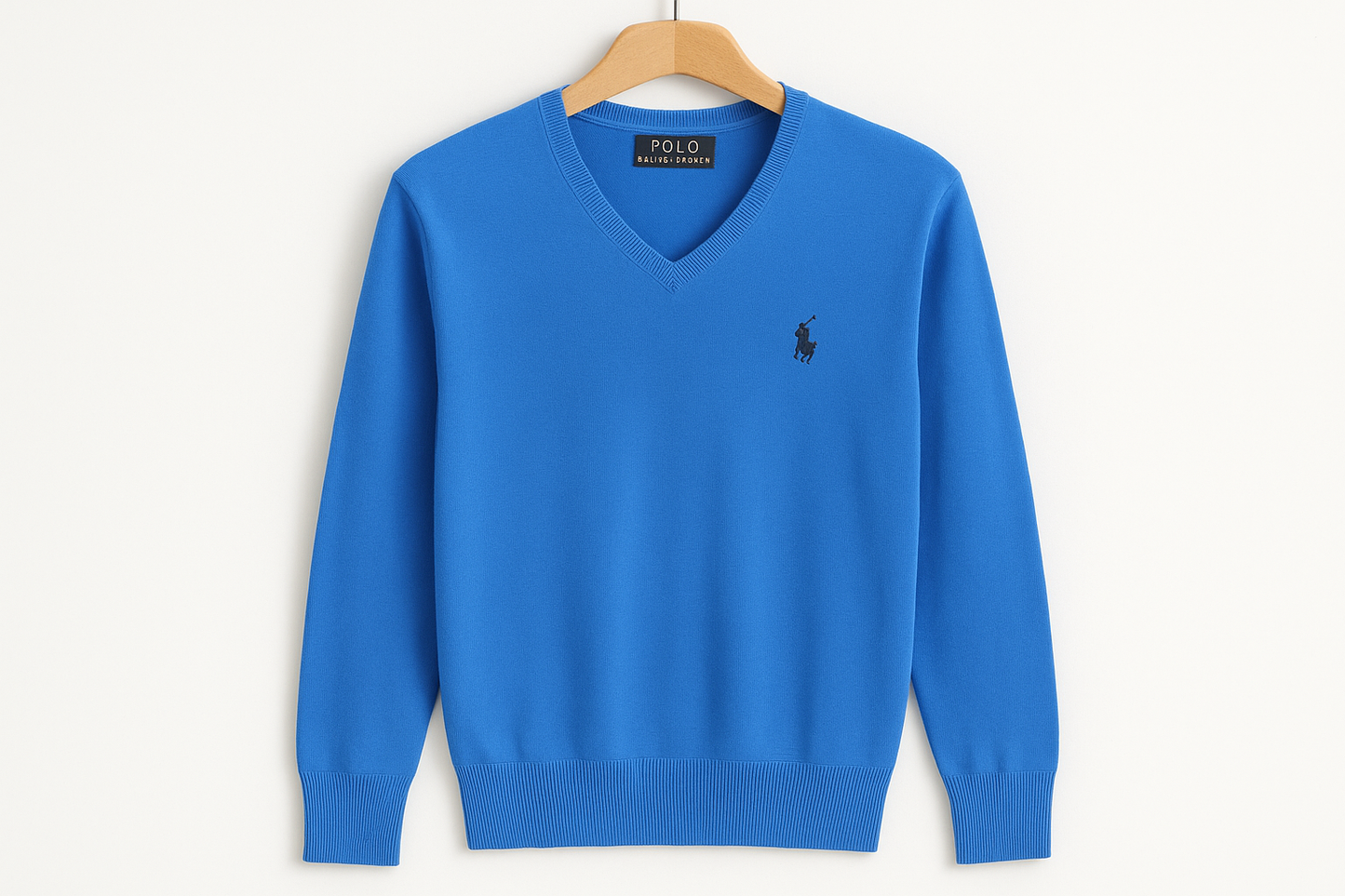 Sueter Jersey con cuello V Polo Ralph Lauren 🏇🏼 color azul claro Talla S