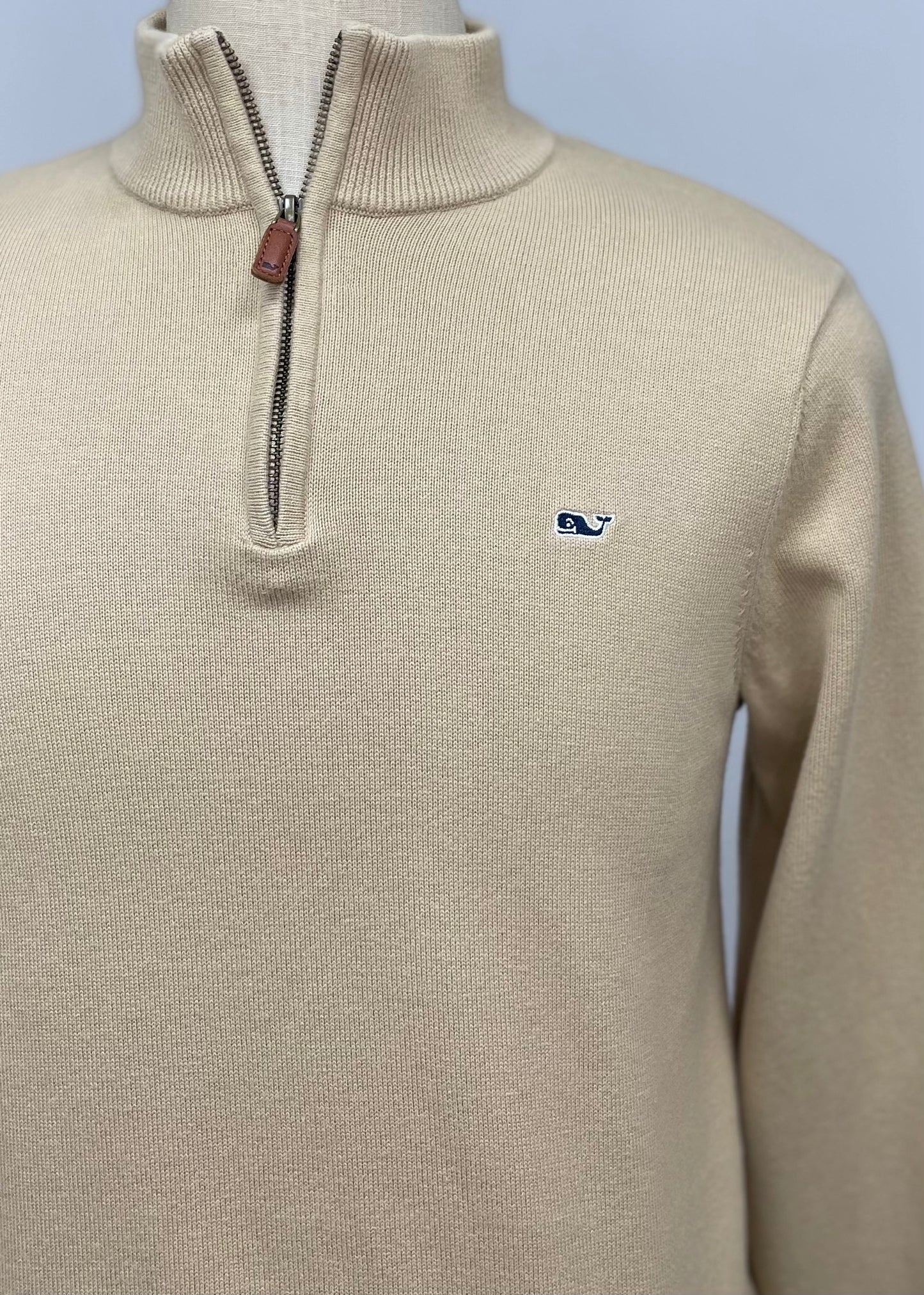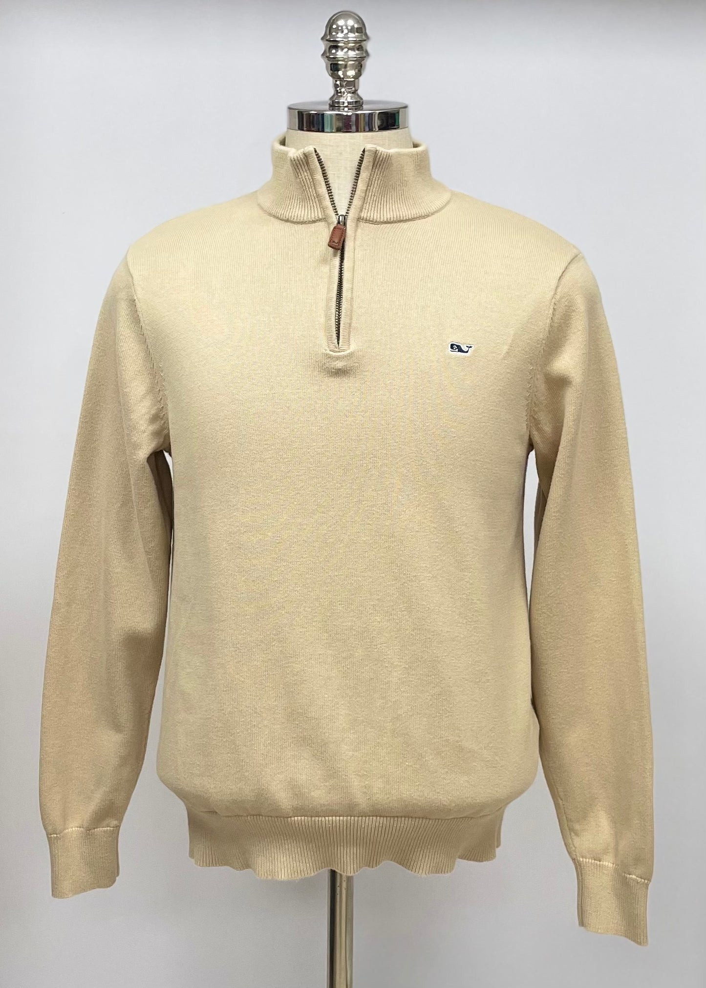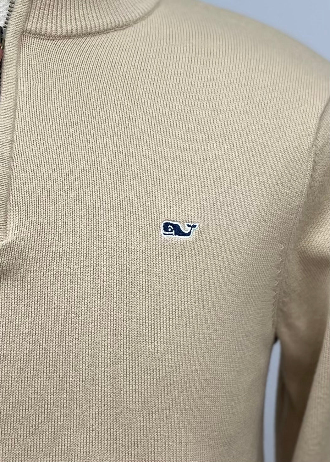 Sueter Jersey Vineyard Vines 🐳 - Talla Small - Entalle clásico - Manga larga con puños en bandas - Color kaki y logo bordado en color azul navy - 100% algodón pima - Cuello de 1/4 ajustable con zipper - Como nuevo 10/10 - Precio $40 💵 DM 📩 Por si tiene alguna consulta