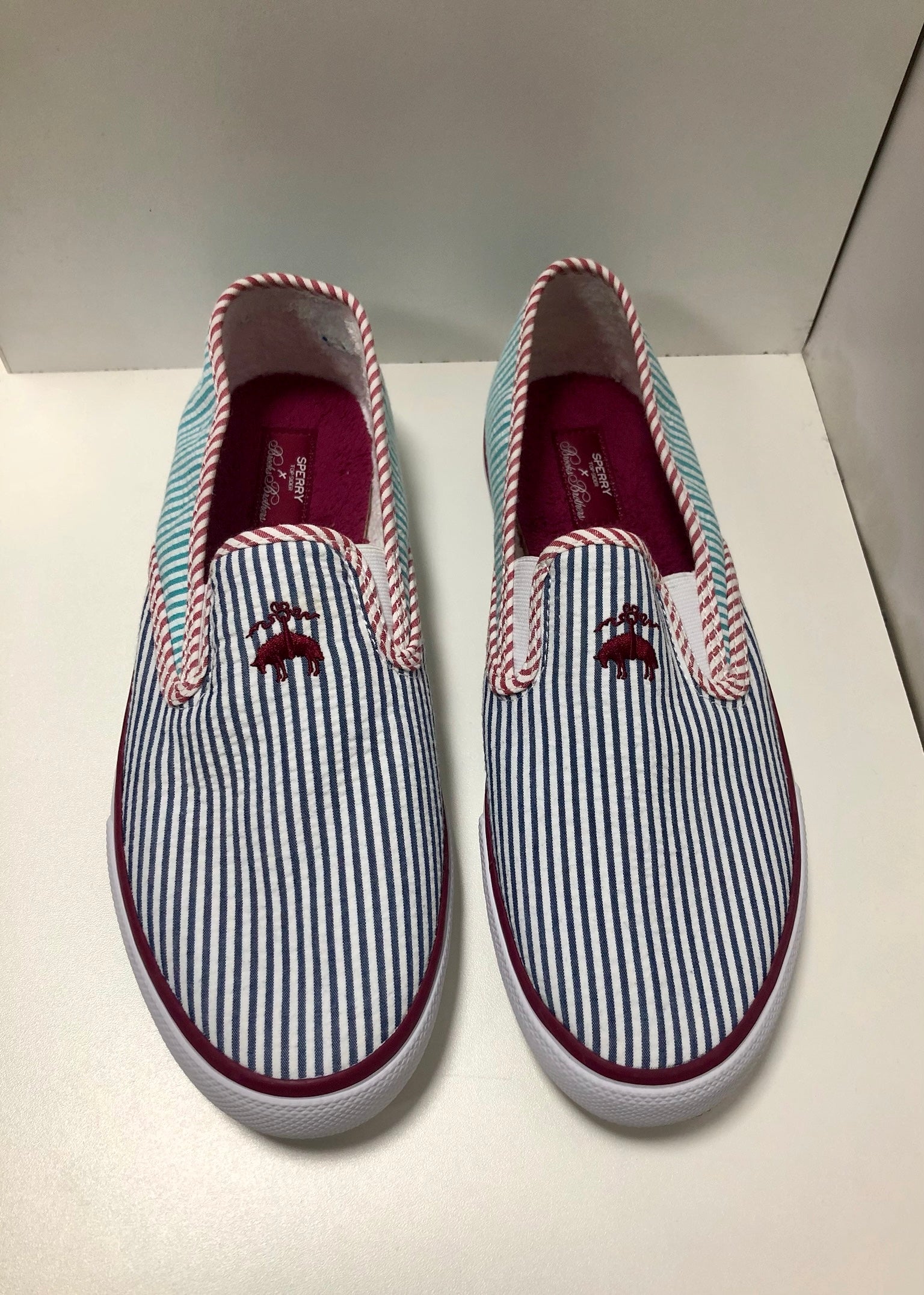 Zapatillas Casuales Brooks Brothers 🐑 De rayas multicolor con detalle de logo en rojo Talla 10
