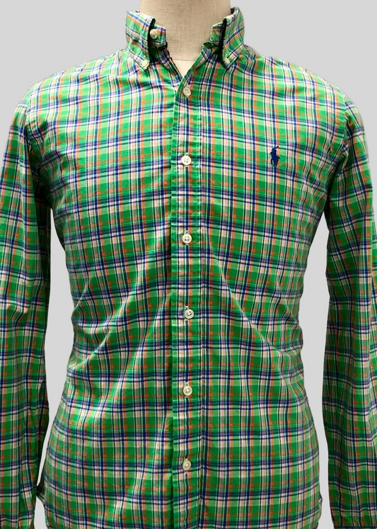 Camisa Polo Ralph Lauren 🏇🏼 con patron de cuadro verde, azul y blanco Talla S Entalle Custom Fit